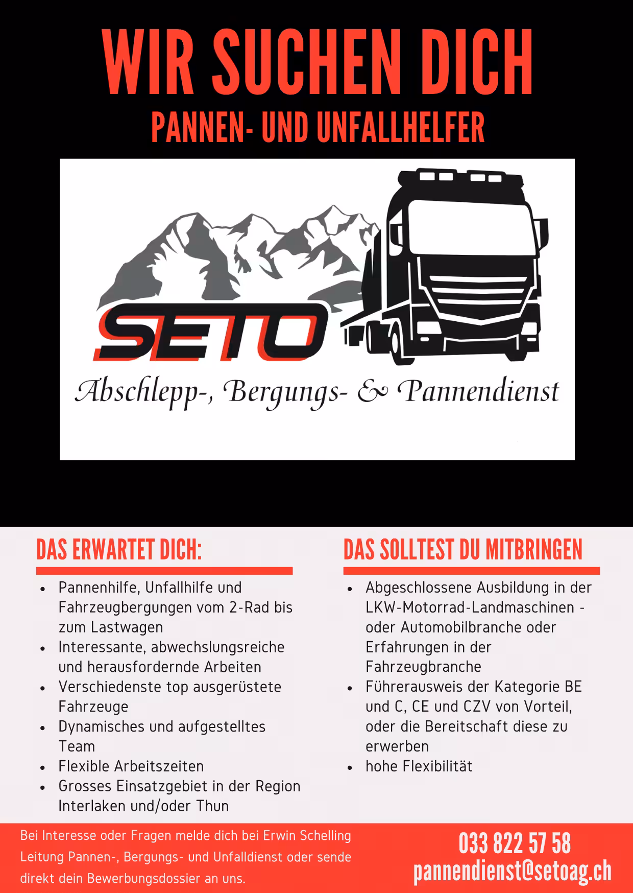 Bist du bereit, Teil eines dynamischen Teams zu werden? Die Seto AG sucht engagierte Mitarbeiter für unseren erstklassigen Pannendienst!