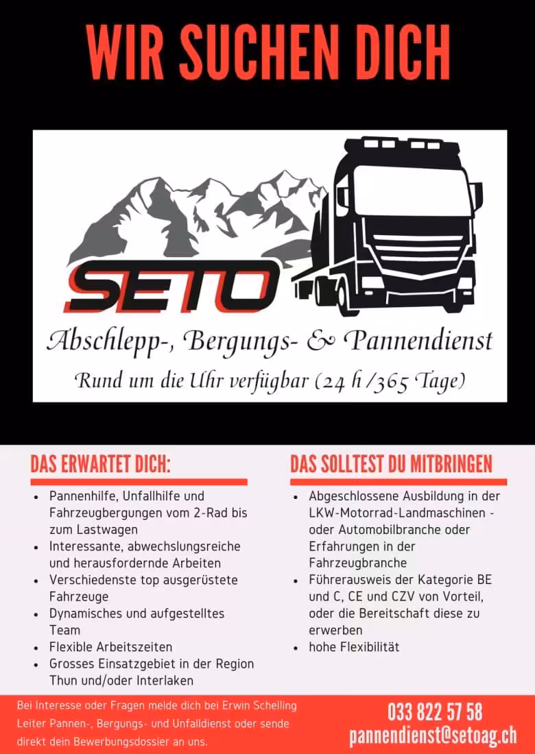 Bist du bereit, Teil eines dynamischen Teams zu werden? Die Seto AG sucht engagierte Mitarbeiter für unseren erstklassigen Pannendienst!